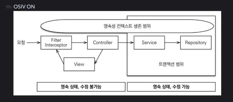장점: 지연로딩 사용 가능, 하나의 요청에 대해 동일한 영속성 컨텍스트 공유