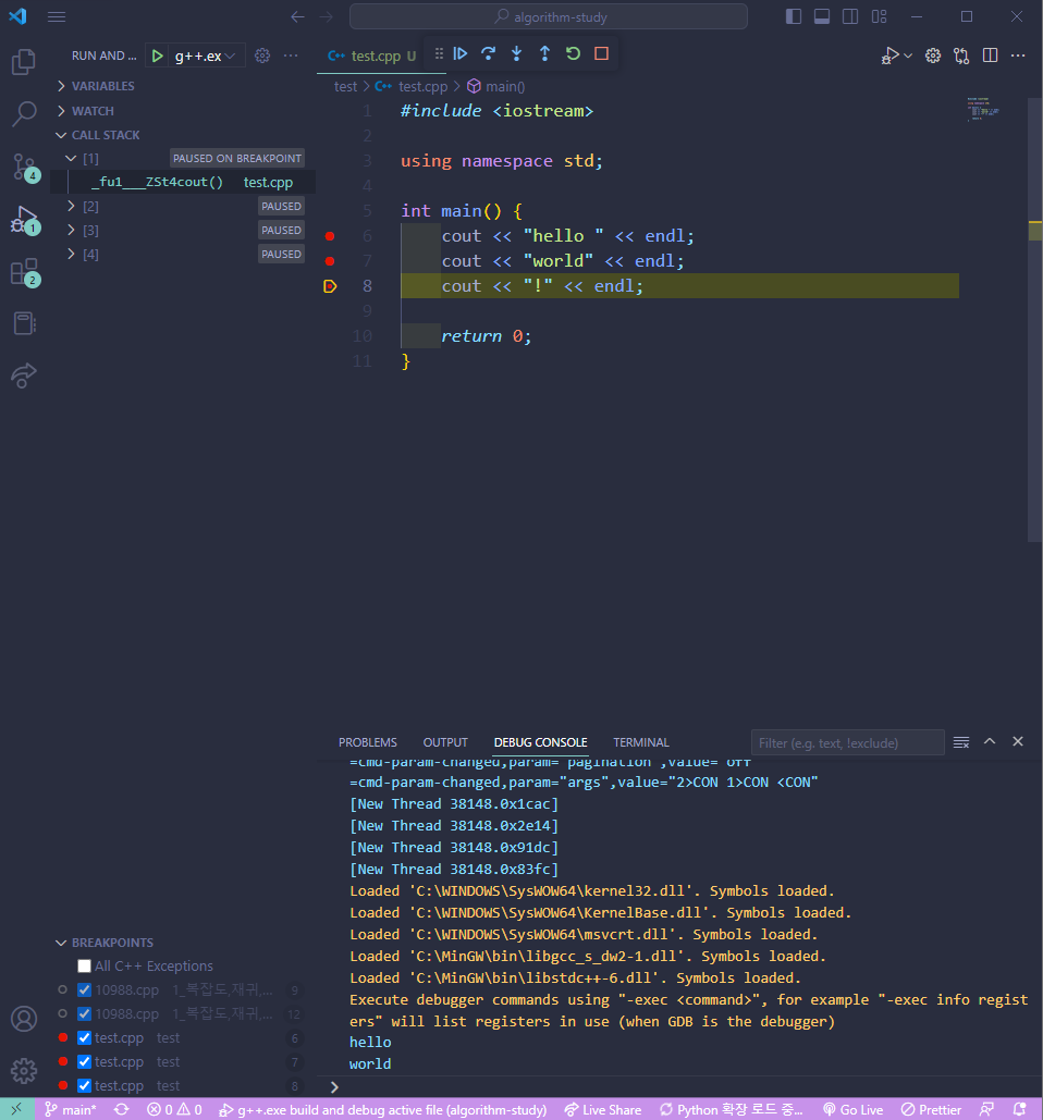 인줄 알았지만... 파일 경로에 한글이 들어가면 디버깅이 제대로 실행되지 않는다... 이건 차차 문제를 해결해보고 추후에 내용을 추가할 것이다.