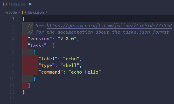 tasks.json에서 각 설정 값의 의미는 다음과 같다.