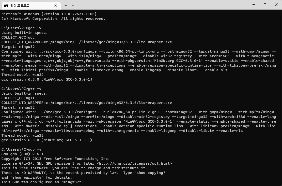 환경 변수 추가 이전에는 gcc, g++, gdb 명령어에 대해 다음과 같은 결과가 출력되었지만