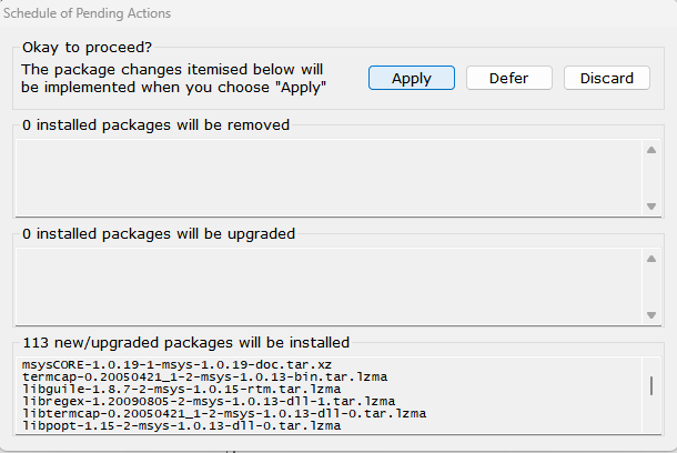 각 패키지를 클릭한 후 Mark for Inatallation 메뉴를 다시 클릭하여 설치할 패키지 총 4개를 선택한다.
