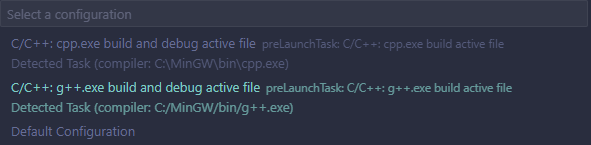 launch.json 파일이 자동 생성되면서 tasks.json 파일 끝에 C/C++: g++.exe build active file 작업이 추가될 수 있다. 해당 작업은 위에서 정의한 작업과 비슷하기 때문에 삭제해도 무방하다.